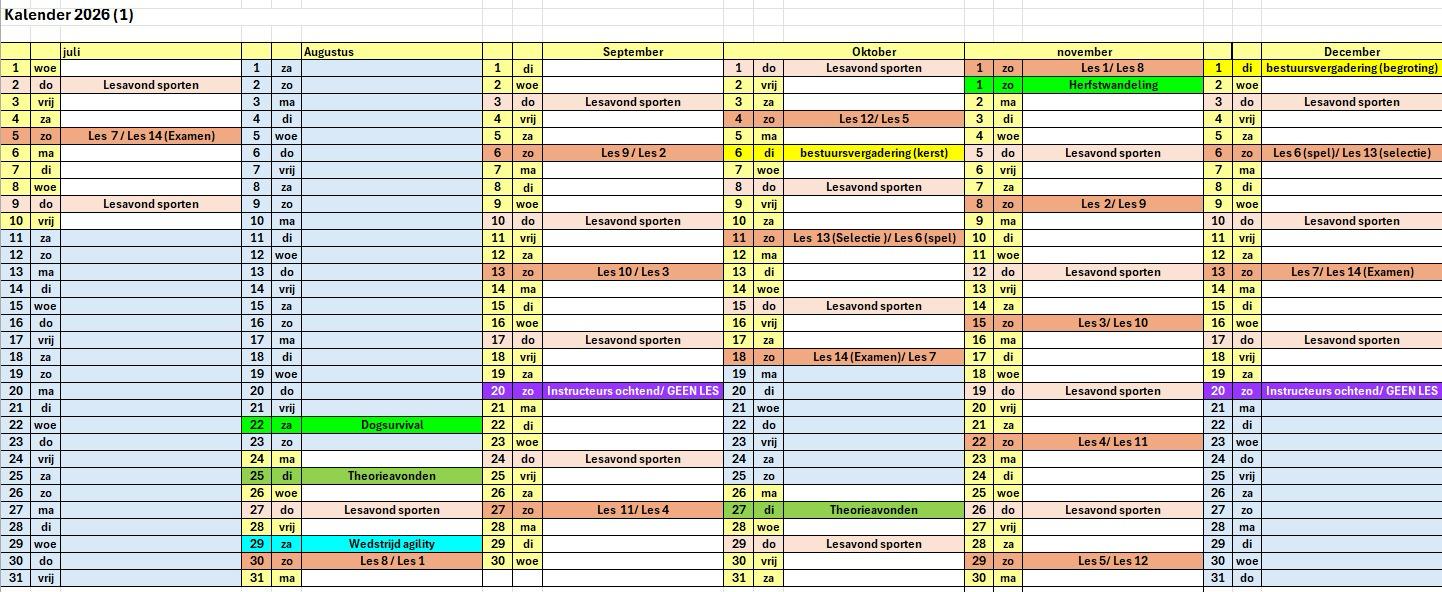 Op dit moment verzorgen wij vooral cursussen die gericht zijn op het opvoeden van de (huis)hond. Hierbij is kennisoverdracht over het gedrag van honden een belangrijk onderdeel. Met deze kennis wordt de eigenaar in staat gesteld om in dagelijkse situaties op een juiste manier met de hond om te gaan. Verder verzorgen wij cursussen zoals Fun Obedience en Agility waarbij u op een leuke manier met hondensport bezig kunt zijn en kunt trainen om deel te nemen aan examens en/of wedstrijden. Als u wel op een leuke manier met uw hond bezig wilt zijn maar dit alleen recreatief wenst te doen dan kunt u terecht in onze Recreanten groep en sinds 2023 hebben we zelfs een nieuwe hondensport: Hoopers! Wij bieden onze leden daarnaast ook nog allerlei andere diensten en activiteiten.