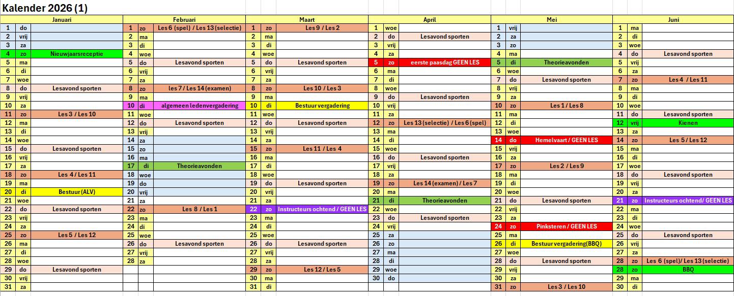 | 1-2 | Les 6 (spel) / Les 13 (selectie) |
